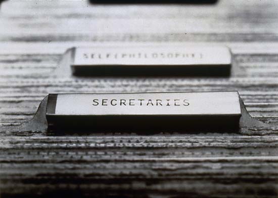 Framed strategically and captured cinematically, Erica Baum’s work isolates the subject headings of library catalogue cards in a manner that returns unexpected concrete poetry, encouraging the viewer to ponder the power dynamics between words.